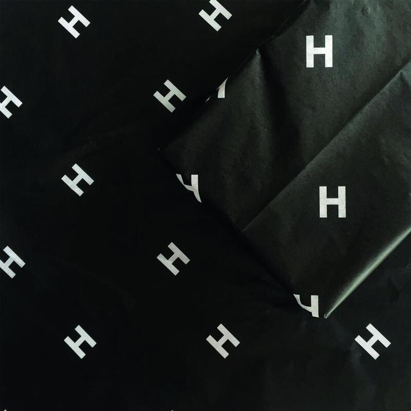 Black printed tissue paper creates a strong bold look, with a touch of sophistication and luxury:
