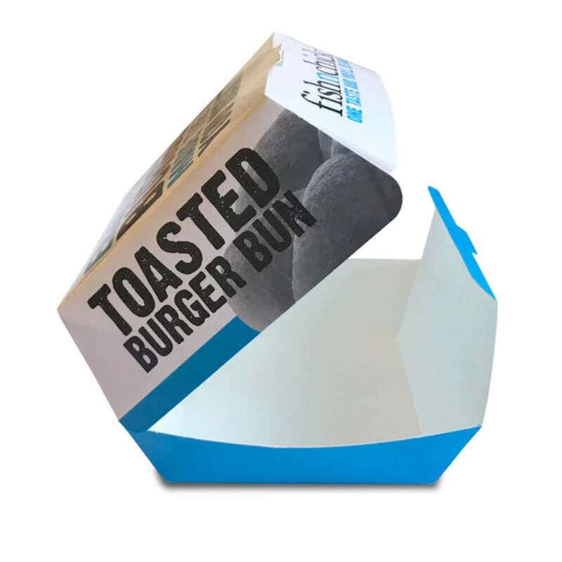 You've guest it Bulkbuy Packaging also offer custom printed greaseproof paper that is a great accompaniment to your printed burger boxes. We also sell custom printed stickers if you need to add a tamper evidence to your food packaging. We list all our burger box prices online so you can easily see how much they are. Our cardboard burger boxes are easy to set up and are made from sustainably sourced forests. 100% recyclable and compostable making them a great choice for the environment.