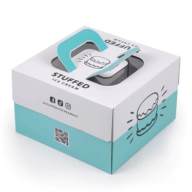 ACA Packaging offers high quality Custom Cake Boxes with Handle solutions, with various finishing options such as cuts, creases, varnishing,