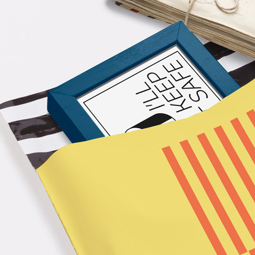 - Background colour: choose from three colours for the background of your coloured mailing bags.