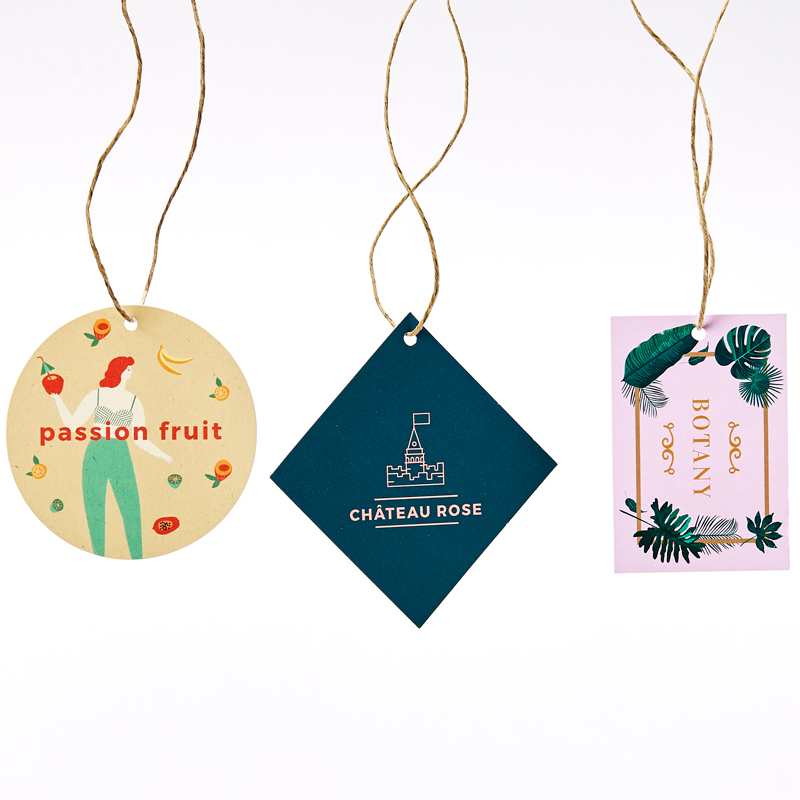 - Custom Tags: suitable for all kinds of products, you can select a circular, square or rectangular format or choose your own custom shape. A wide selection of classic and deluxe paper is also available and lamination can be added for that extra-sleek look.