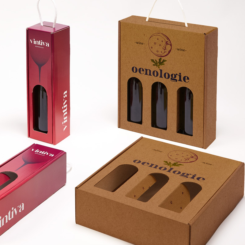 Tradition and flavour can also be described through original packaging. You can now keep your wine bottles in unique Bottle Boxes that will promote your brand. Displayed on shelves in your shop, your new cardboard wine carriers will attract customers' attention and describe the product in an instant. You create a winning graphic design concept and we will bring it to life with the best printing technology on the market.