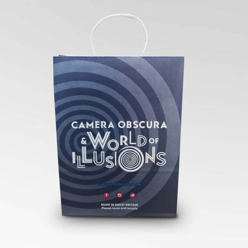 Custom printed twisted handle paper bags - A very popular choice for boutique shops and stalls looking for a more premium look. Available in brown kraft and white colours to suit your brand values. Sustainability is at the forefront of people purchasing decisions so its important that your branded bags mirror your commitment to the environment. Furthermore our printed twisted handle bags are very strong and will be sure to catch people attention. If your business is looking for eco friendly bags with handles for your products to be taken home then look no further. Personalise your handle bags with your logos, branding, imagery and marketing material. We print your twisted handle paper bags using the most up to date printing techniques so you can rest assured your bags will be sure to get noticed when your customers are walking with them.